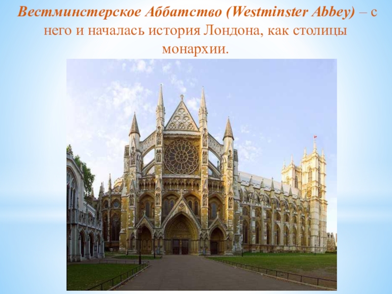 Слайд 9Вестминстерское Аббатство (Westminster Abbey) – с него и началась история Лондона,