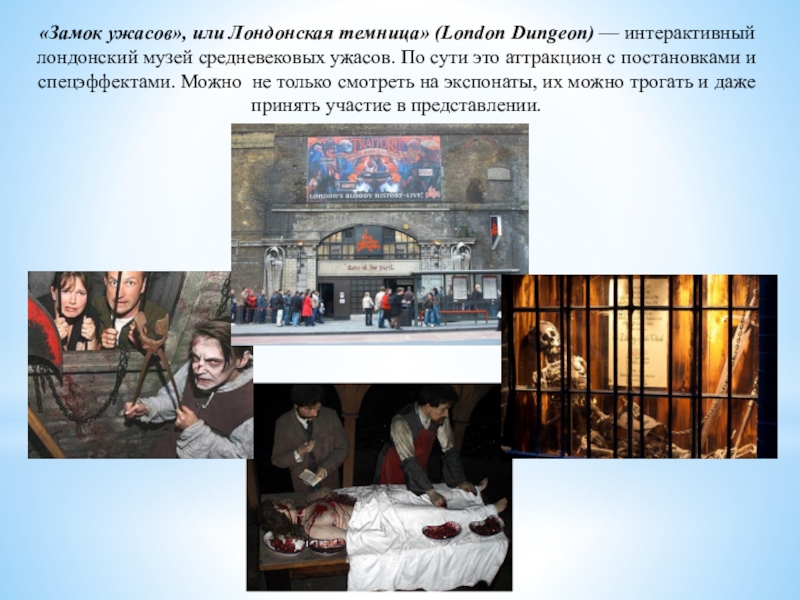 Слайд 26«Замок ужасов», или Лондонская темница» (London Dungeon) — интерактивный лондонский музей