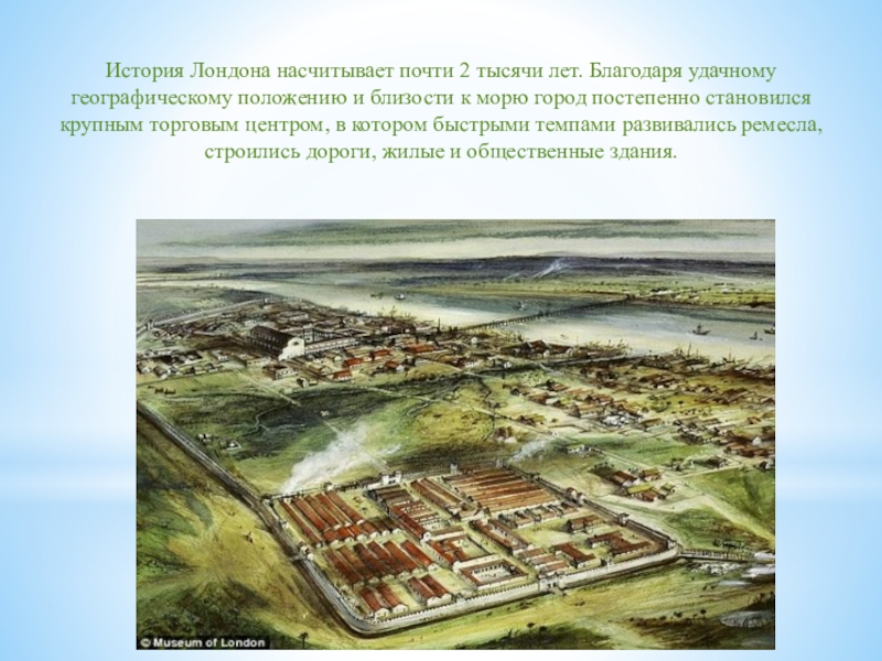 Слайд 5История Лондона насчитывает почти 2 тысячи лет. Благодаря удачному географическому положению