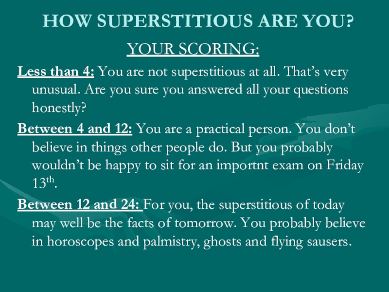 Слайд 7HOW SUPERSTITIOUS ARE YOU?