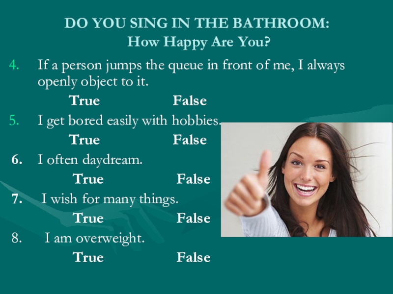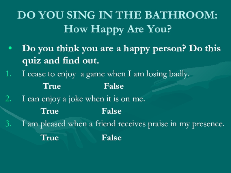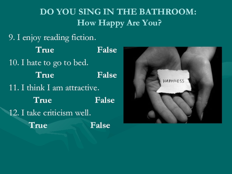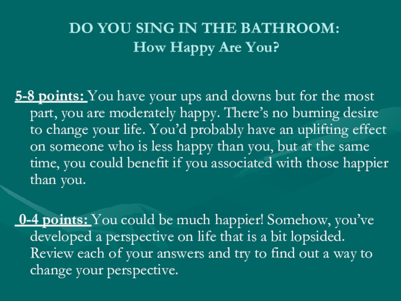 Слайд 9DO YOU SING IN THE BATHROOM: How Happy Are You?