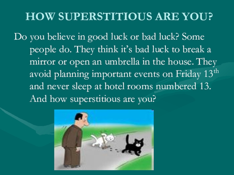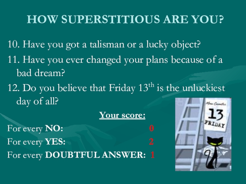 Слайд 6HOW SUPERSTITIOUS ARE YOU?
