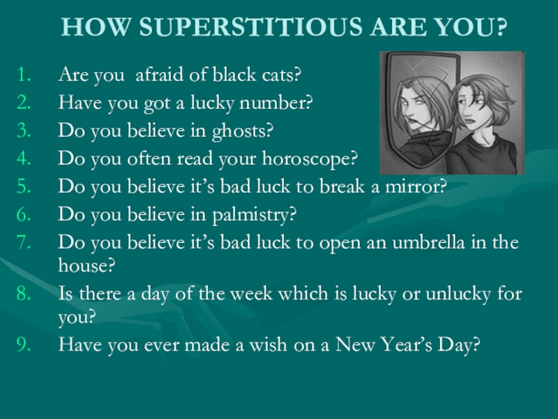 Слайд 8HOW SUPERSTITIOUS ARE YOU?