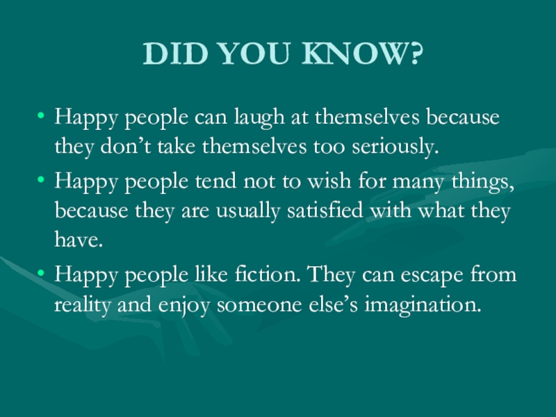 Happy people tend not to wish for many things, because they are usually satisfied with what they have.