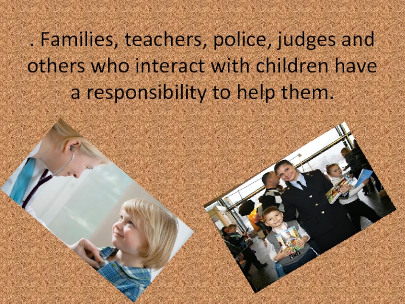 Слайд 6. Families, teachers, police, judges and others who interact with children