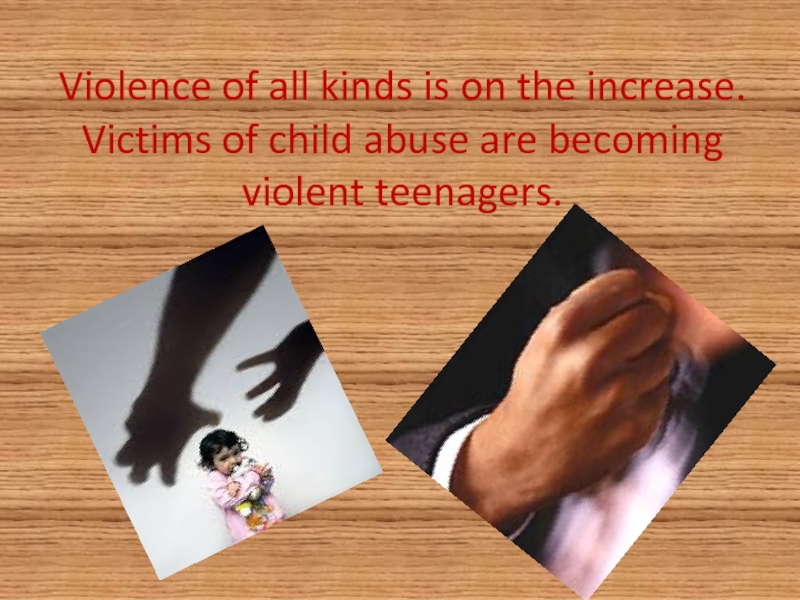 Слайд 3Violence of all kinds is on the increase. Victims of child abuse