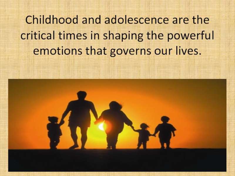 Childhood and adolescence are the critical times in shaping the powerful emotions that governs our lives.