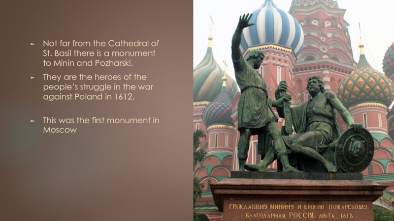 Not far from the Cathedral of St. Basil there is a monument to Minin and Pozharski. They