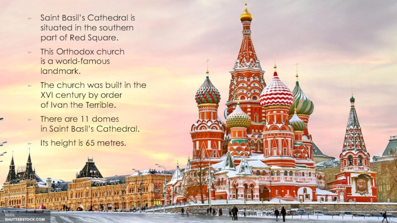 Слайд 3Saint Basil’s Cathedral is situated in the southern part of Red
