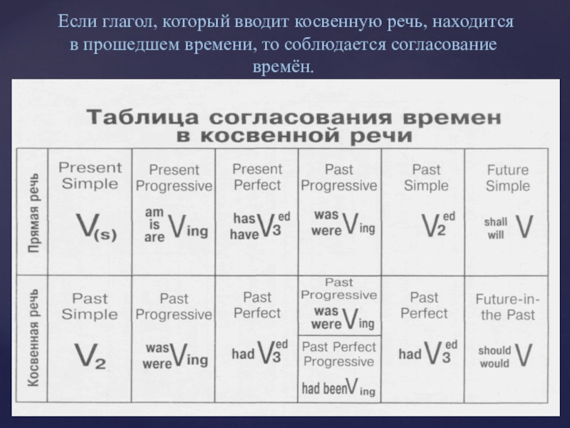 Слайд 2Если глагол, который вводит косвенную речь, находится в прошедшем времени, то
