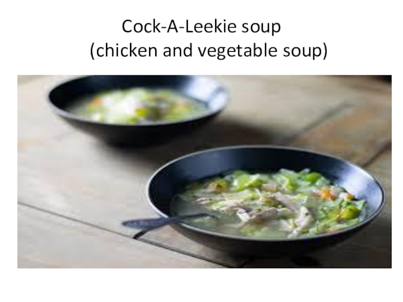 Слайд 9Cock-A-Leekie soup (chicken and vegetable soup)