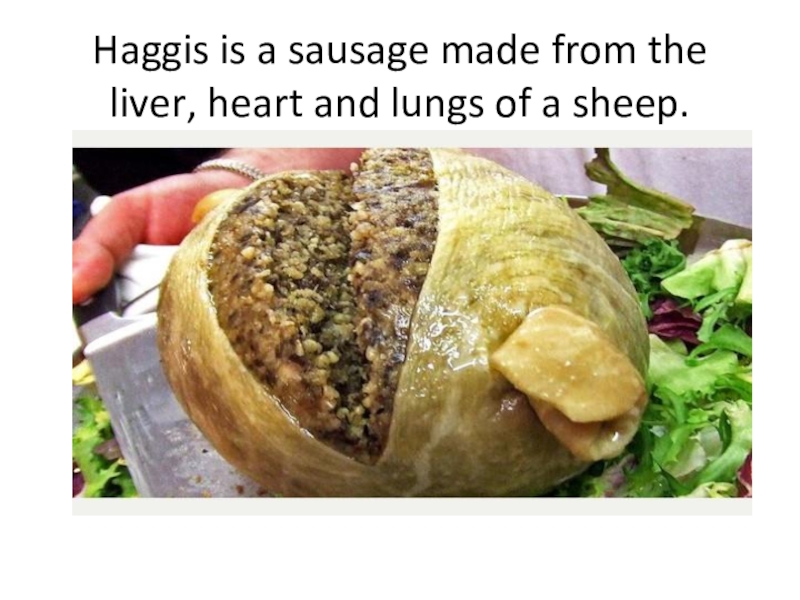 Слайд 11Haggis is a sausage made from the liver, heart and lungs