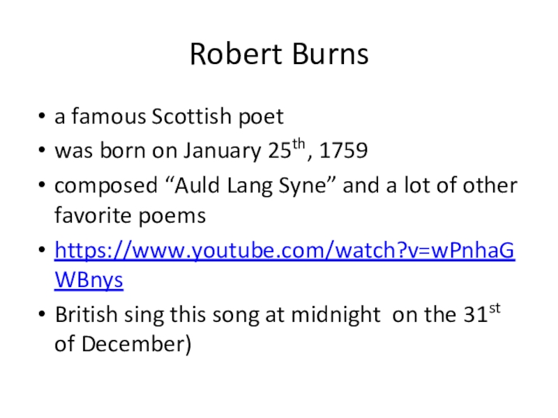 Robert Burns a famous Scottish poet was born on January 25th, 1759composed “Auld Lang Syne” and a