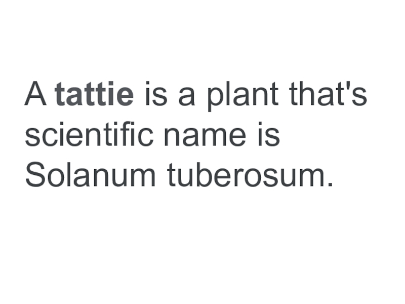 Слайд 13A tattie is a plant that's scientific name is Solanum tuberosum.