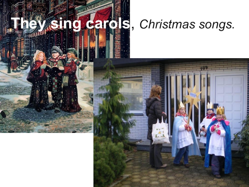 Слайд 11They sing carols, Christmas songs.