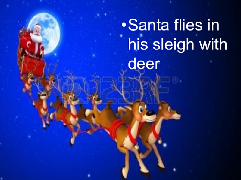 Santa flies in his sleigh with deer
