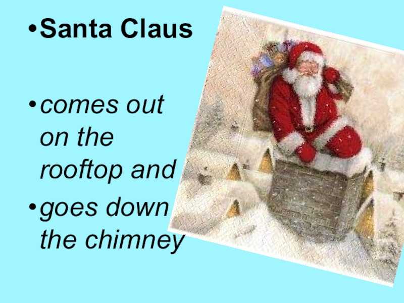 Santa Clauscomes out on the rooftop andgoes down the chimney