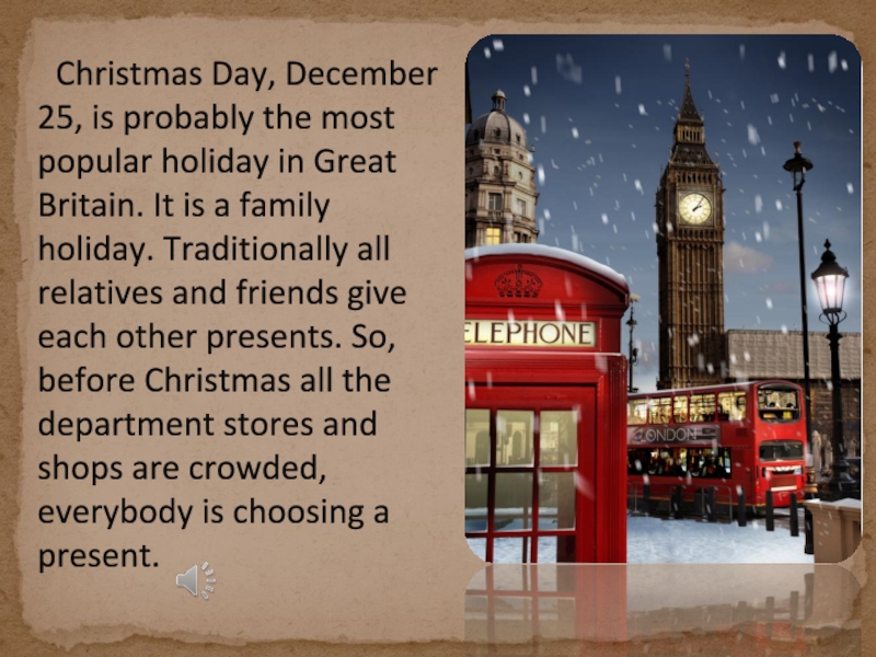 So, Christmas is a merry family holiday for all the people of Great Britain. Christmas comes but