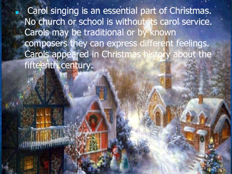 Слайд 6 Carol singing is an essential part of Christmas. No church