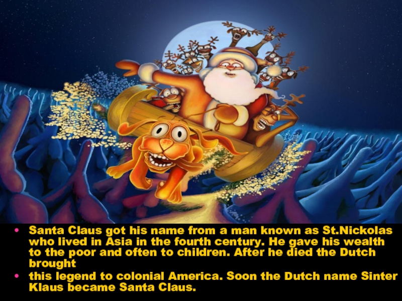 Слайд 5Santa Claus got his name from a man known as St.Nickolas