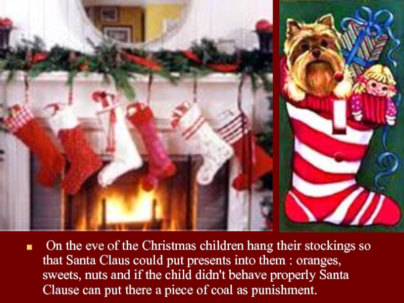 Слайд 4 On the eve of the Christmas children hang their stockings