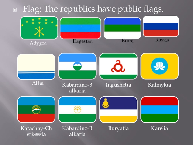 Слайд 2Country: Russia very big country. In Russia 22 republics. Official language