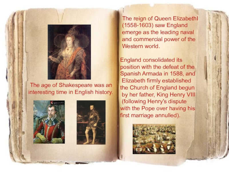 The reign of Queen ElizabethI (1558-1603) saw England emerge as the leading naval and commercial power of the Western world.