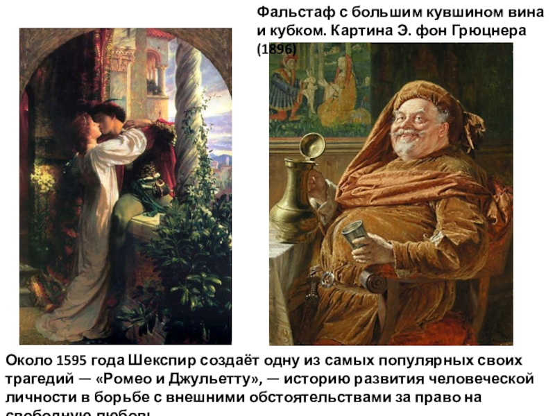 Фальстаф с большим кувшином вина и кубком. Картина Э. фон Грюцнера (1896)