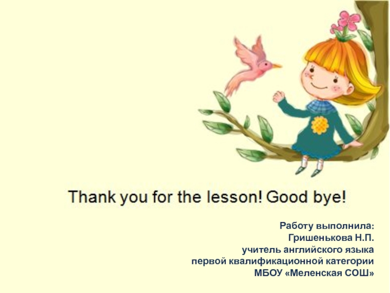 Работу выполнила:Гришенькова Н.П.учитель английского языкапервой квалификационной категории МБОУ «Меленская СОШ»