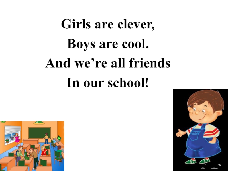 Girls are clever,Boys are cool.And we’re all friendsIn our school!