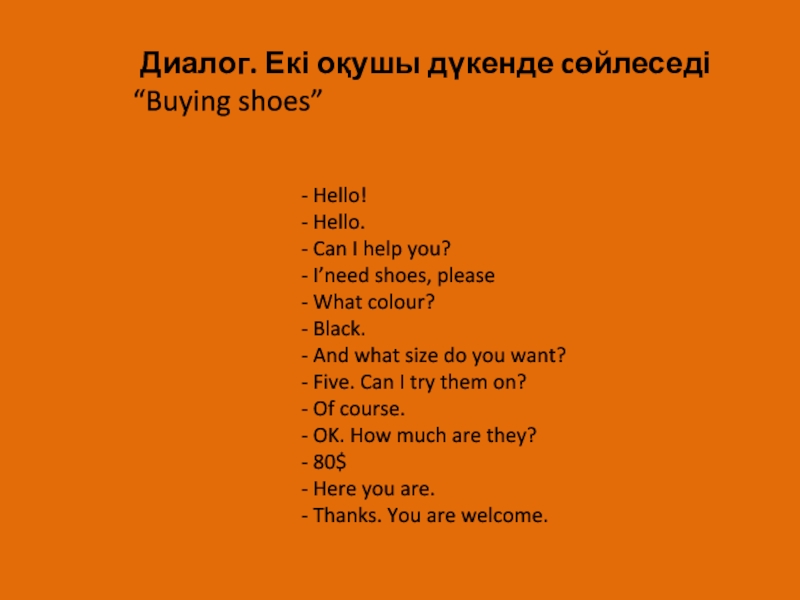 Диалог. Екі оқушы дүкенде cөйлеседі