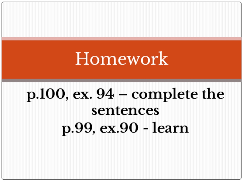 Слайд 8p.100, ex. 94 – complete the sentences