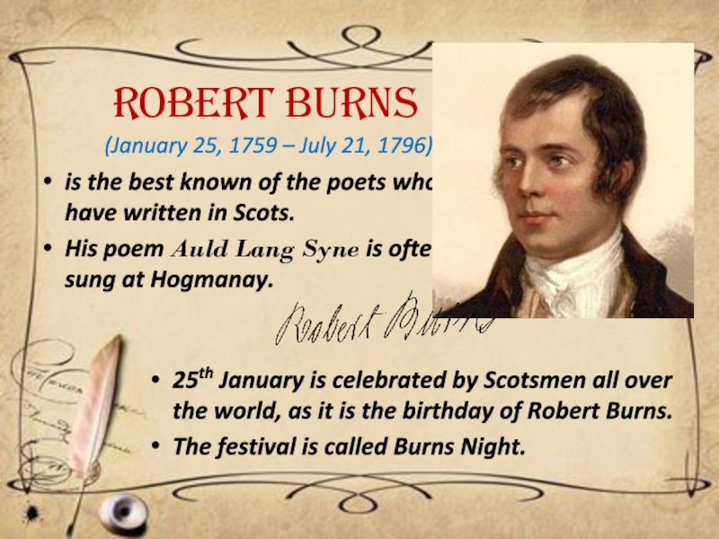 25th January is celebrated by Scotsmen all over the world, as it is the birthday of Robert Burns.