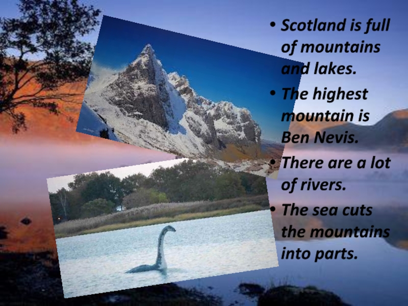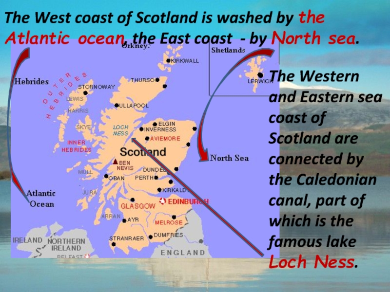 The Western and Eastern sea coast of Scotland are connected by the Caledonian canal, part of which is the famous lake Loch Ness.