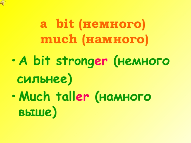 a bit (немного) much (намного)A bit stronger (немного сильнее)Much taller (намного выше)