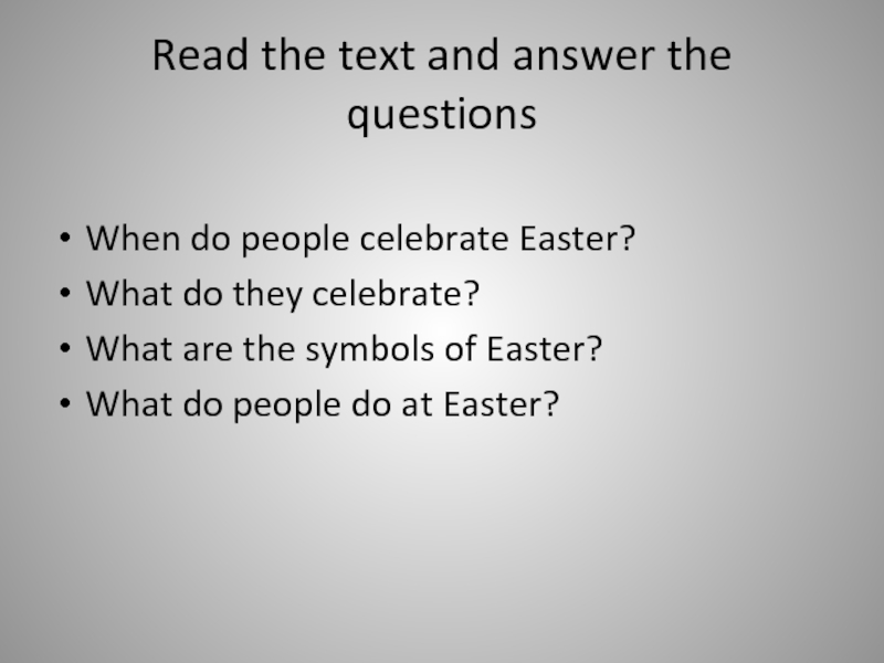 Read the text and answer the questionsWhen do people celebrate Easter?What do they celebrate?What are the symbols