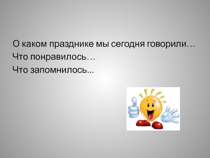 О каком празднике мы сегодня говорили…Что понравилось…Что запомнилось...