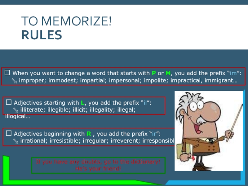 ? Adjectives beginning with R , you add the prefix “ir”: