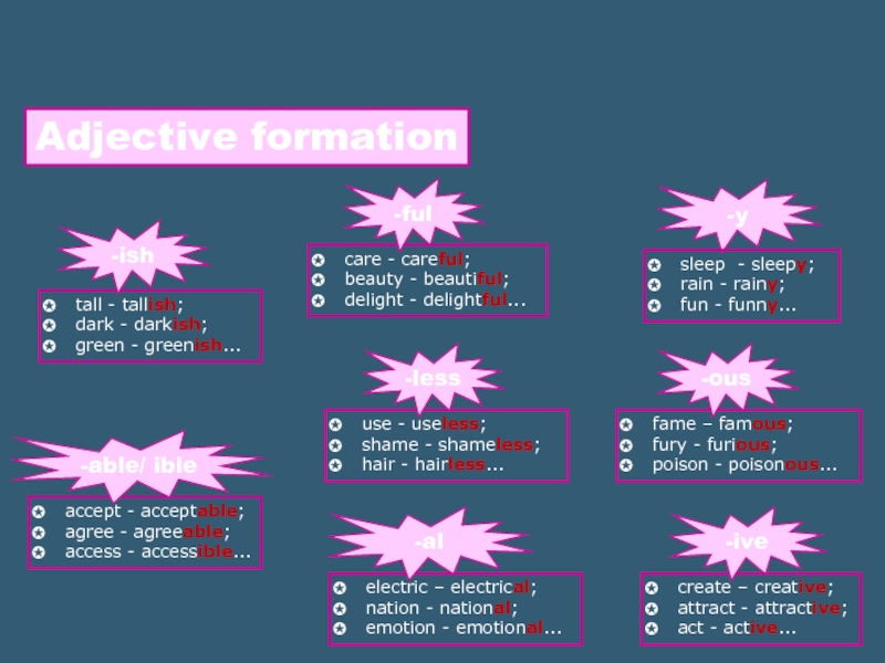 Form adjectives from the nouns: