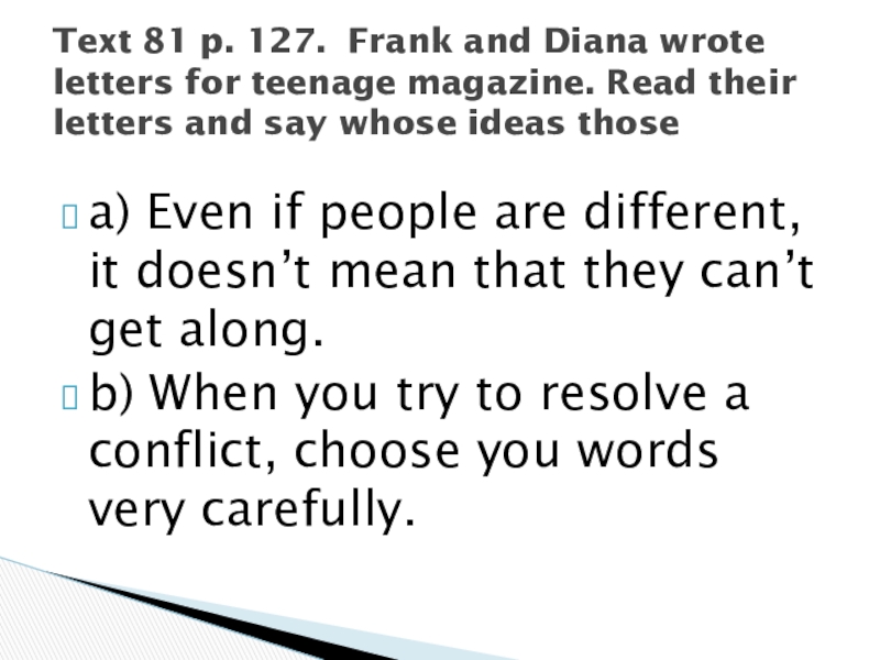 Text 81 p. 127. Frank and Diana wrote letters for teenage magazine. Read their letters and say whose ideas those