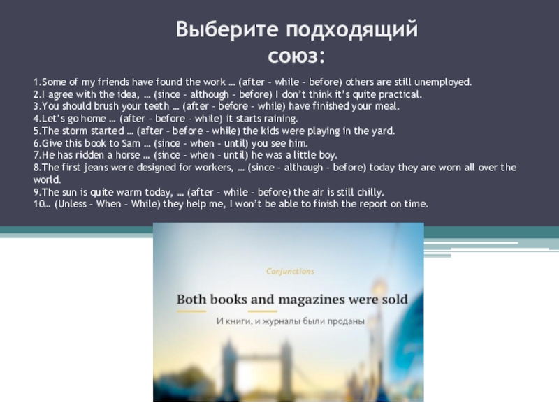 Выберите подходящий союз: