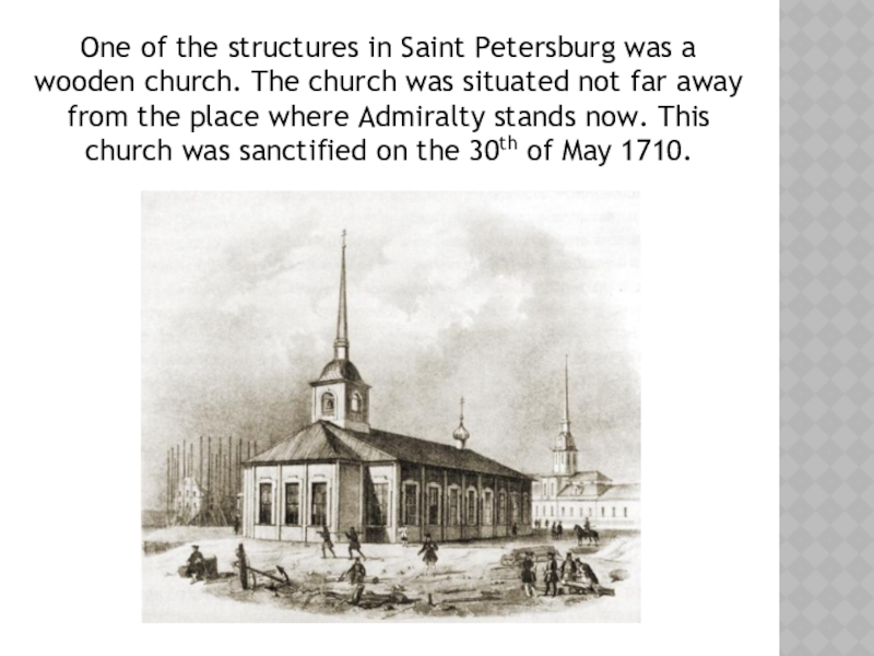 Слайд 3One of the structures in Saint Petersburg was a wooden church.