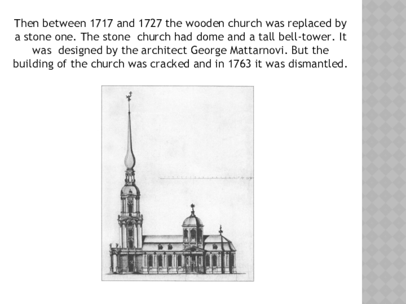 Слайд 6Then between 1717 and 1727 the wooden church was replaced by