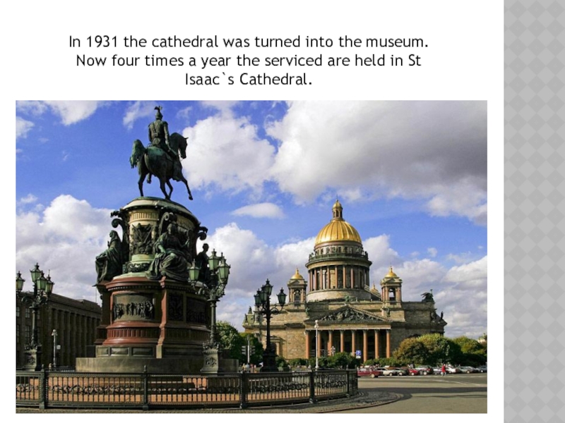 Слайд 10In 1931 the cathedral was turned into the museum. Now four