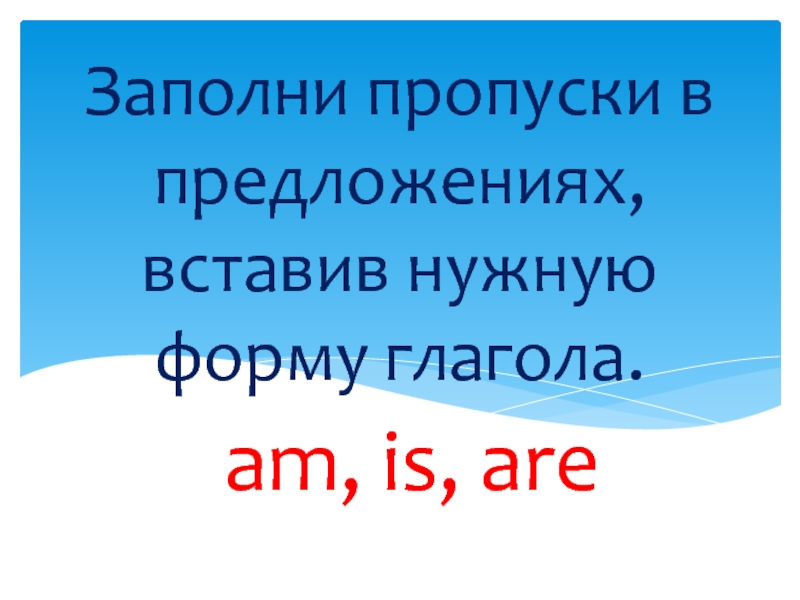 am, is, areЗаполни пропуски в предложениях, вставив нужную форму глагола.