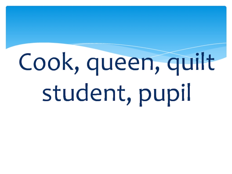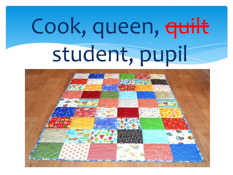 Слайд 33Cook, queen, quilt student, pupil