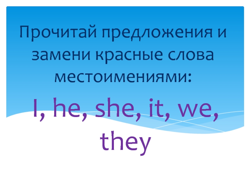 I, he, she, it, we, they Прочитай предложения и замени красные слова местоимениями:
