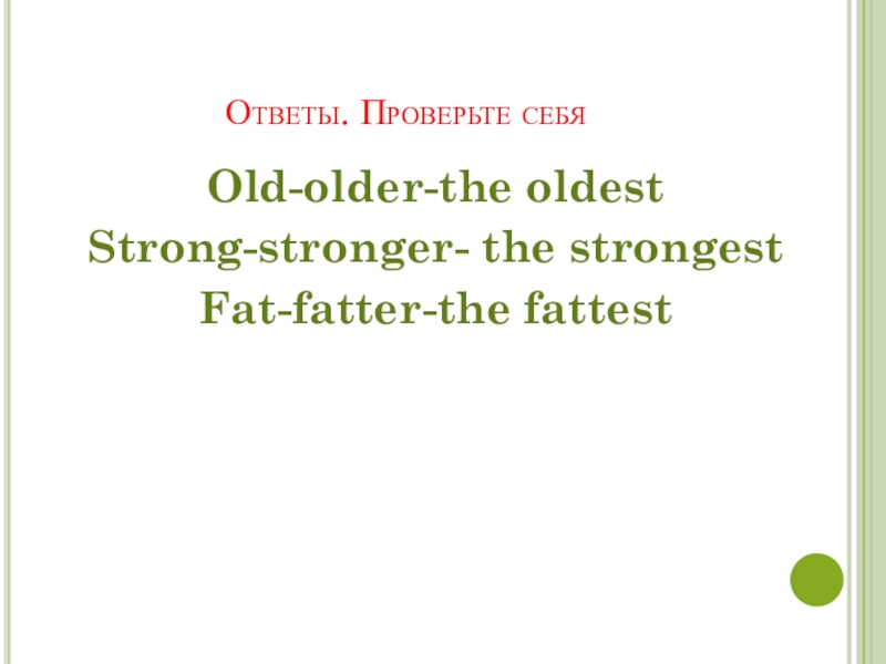 Ответы. Проверьте себяOld-older-the oldestStrong-stronger- the strongestFat-fatter-the fattest