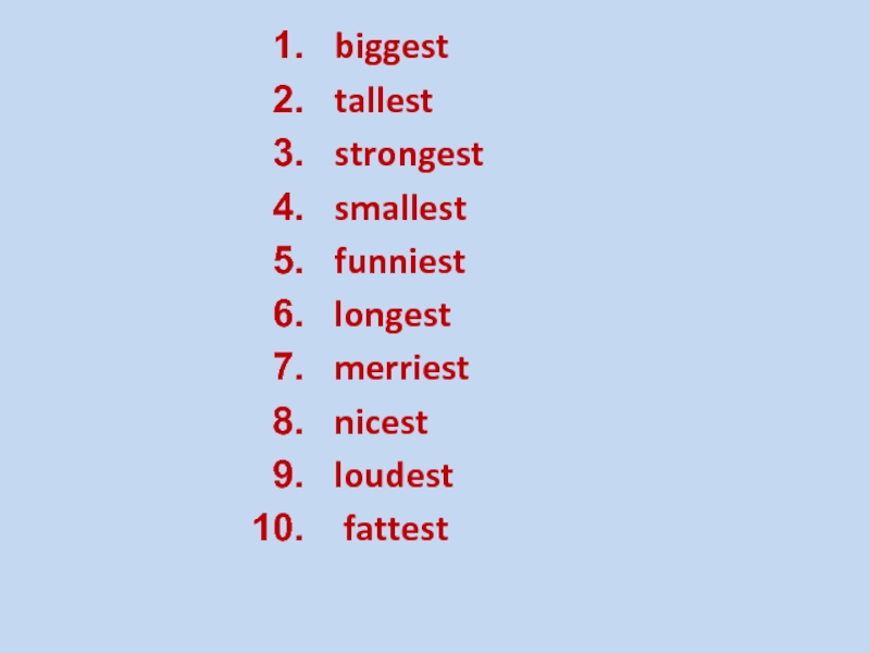 biggesttalleststrongestsmallestfunniestlongestmerriestnicestloudest fattest
