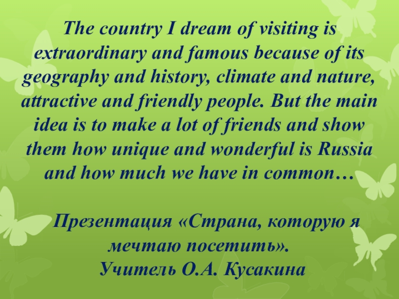 of its geography and history, climate and nature, attractive and friendly people. But the main idea is to make a lot of friends and show them how unique and wonderful is Russia and how much we have in common…